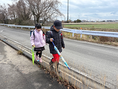 - 例えば)歩く場所に、植木や電柱・看板の柱、水たまりなど障害物がある・広がって歩いたり、追い抜いたりしている